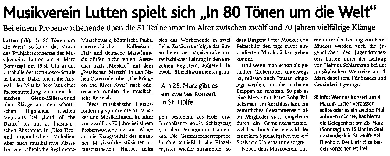 Musikverein Lutten spielt sich "In 80 Tönen um die Welt"